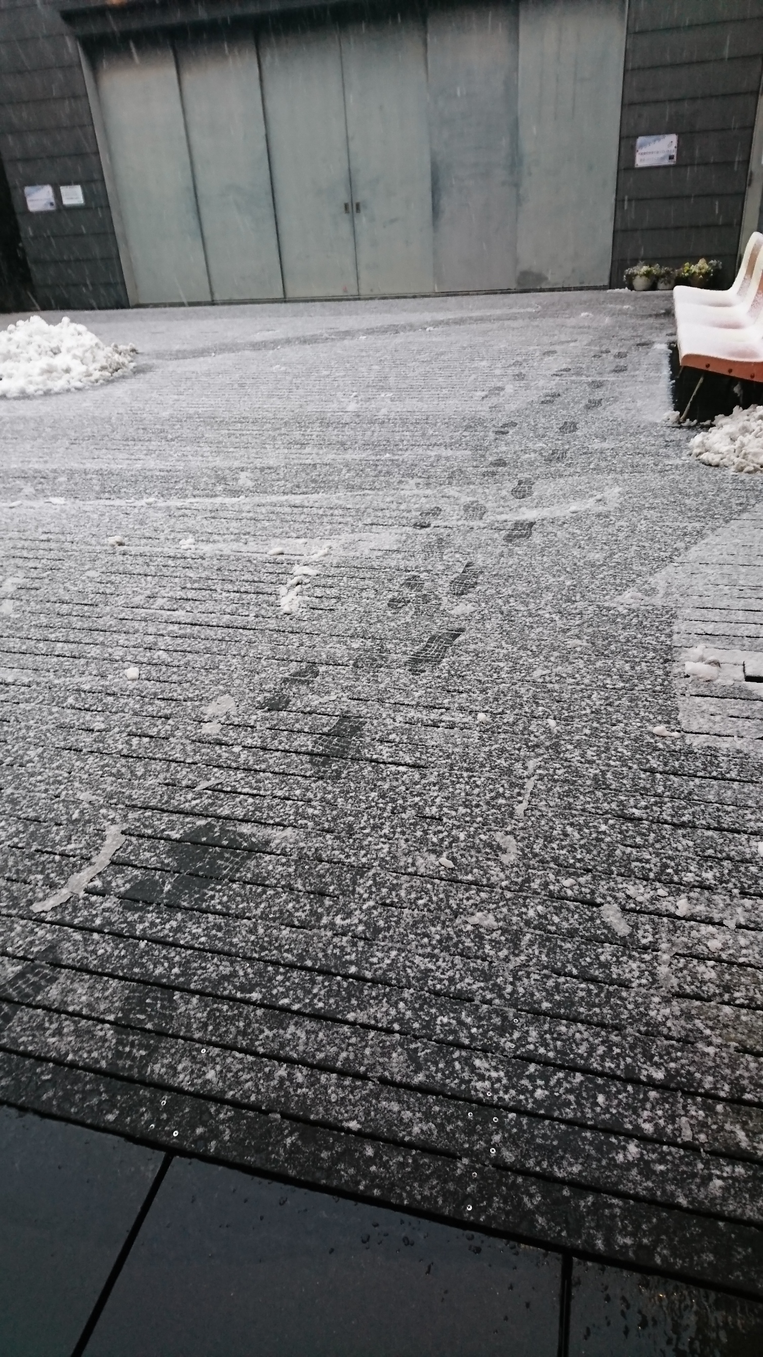昼間は雨で気温もそこまで低くなかったので雪にはならないかな?と思っていたら気温は下がり。